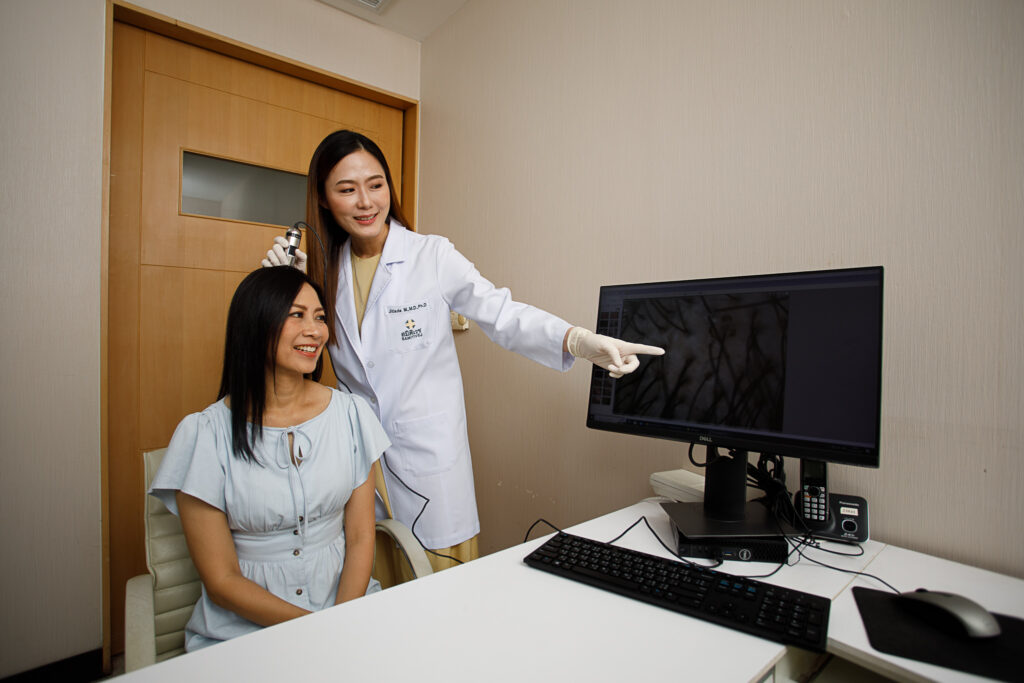 - เข้ารับคำปรึกษาจากแพทย์ผู้เชี่ยวชาญ: และทำการตรวจร่างกายเบื้องต้น เพื่อประเมินสุขภาพโดยรวม ตรวจสอบสภาพหนังศีรษะและอธิบายขั้นตอนการรักษาสำหรับคนไข้แต่ละท่าน